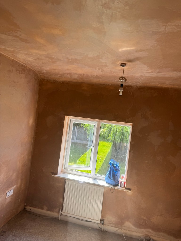 Bedroom walls and ceiling re skimmed over the last day and a half