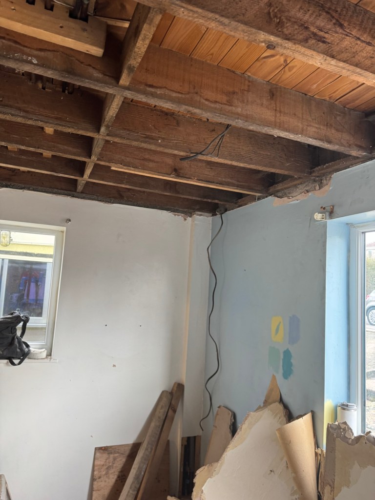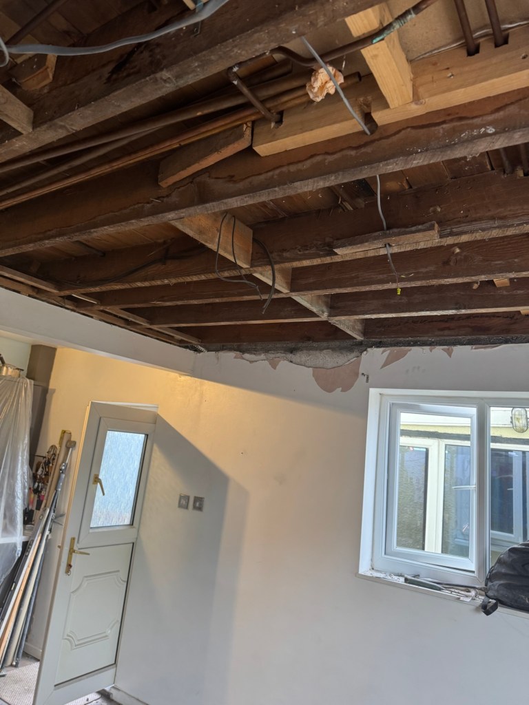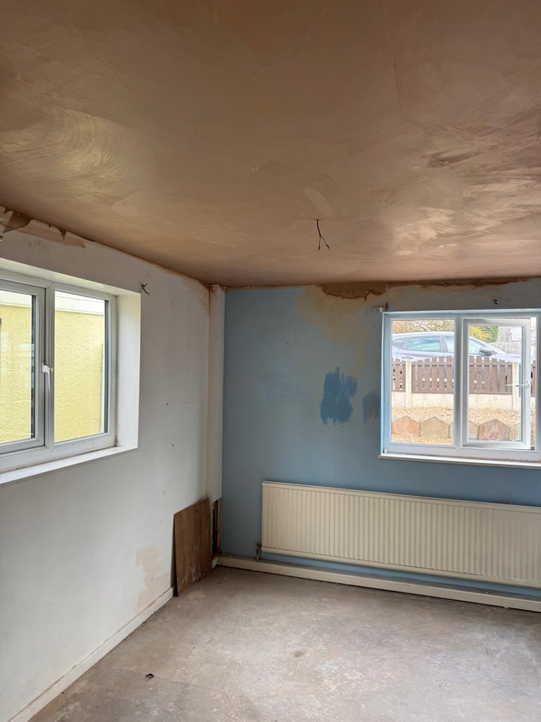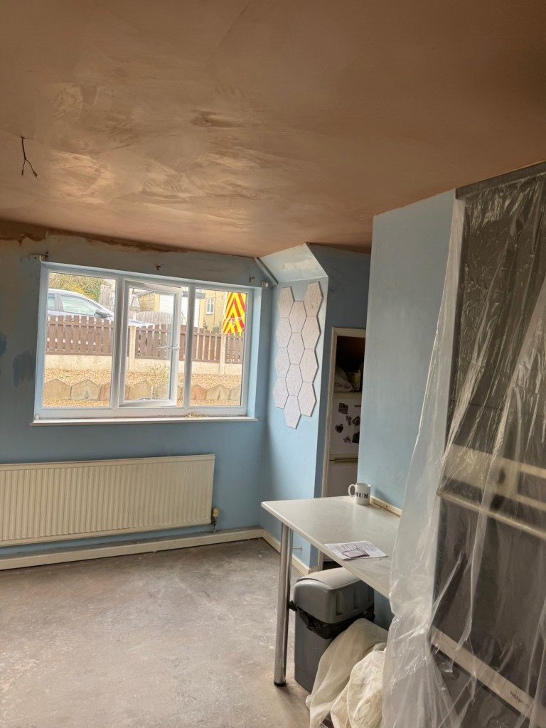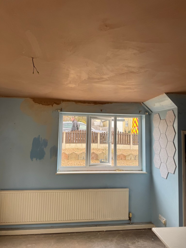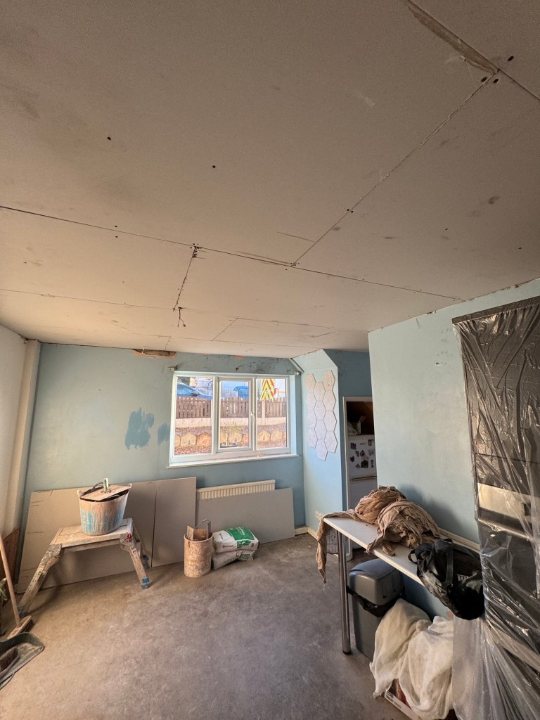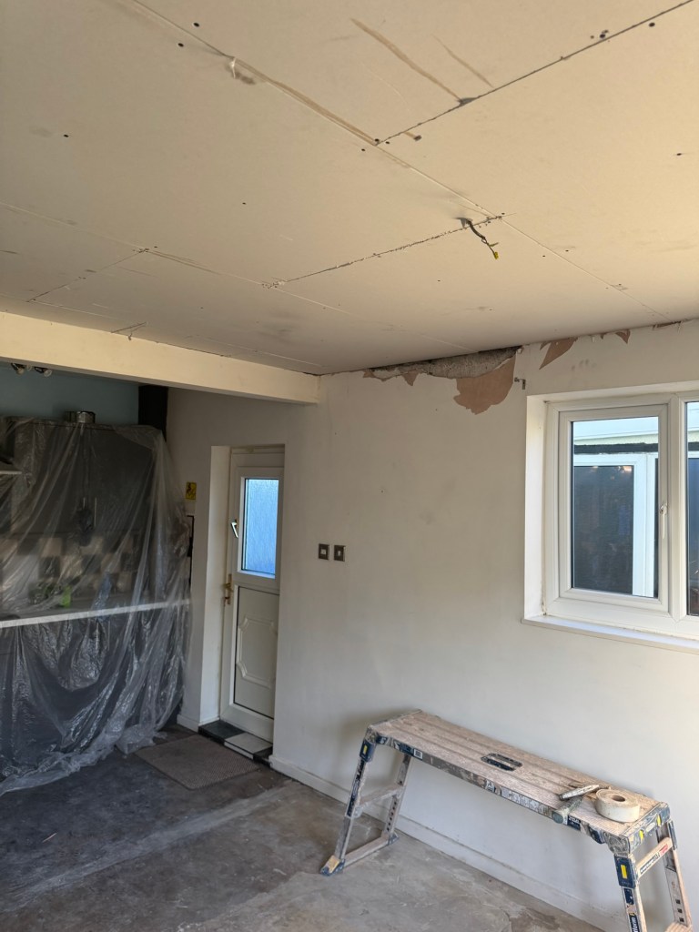 After a big leak the customers ceiling needed ripping down, re boarding and skimming
