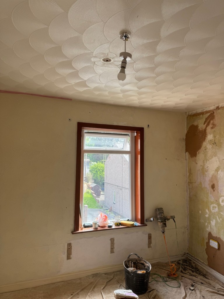 Bedroom walls repaired after a partial re wire then skim walls and ceiling to cover up the old fashioned artex